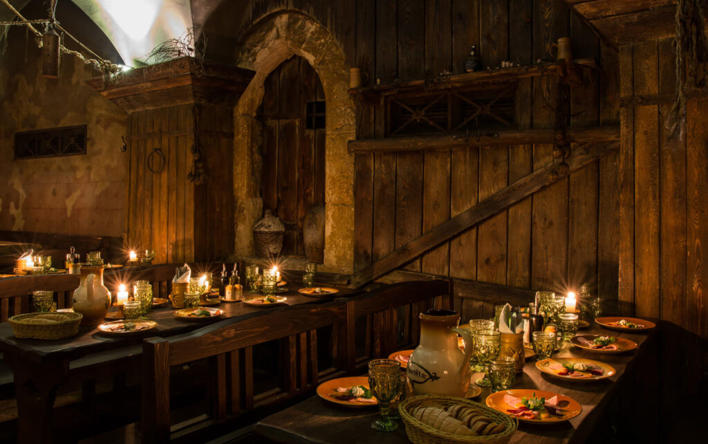 Sumérgete en un ambiente único y romántico mientras disfrutas de una experiencia inolvidable en nuestra taberna medieval subterránea